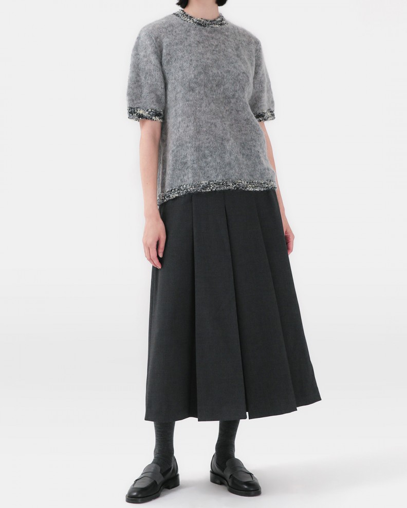 32% angora, 33.5% cotton, 32.2% acrylic, 2.3% spandex Slightly elastic / No see-through / Thin No gloss / Normal feel / Light weight Free: Total length 59, Shoulder 31, Chest 51, Waist 50, Hem 50, Sleeve length 25, Sleeve 13 Model 169cm, wearing size 66 F