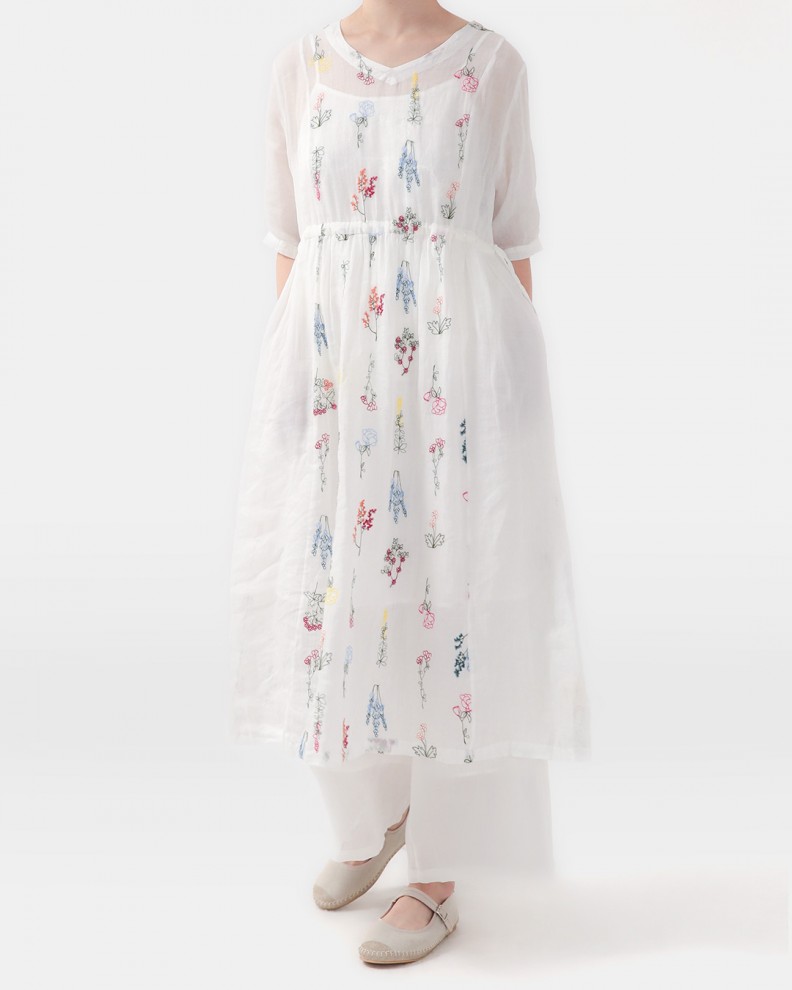 100% Linen No elasticity / No see-through / Thin No gloss / Normal feel / Light weight With lining (underpants) M: Total length 97, Waist 35 (Banding), Hip 46, Thigh 34, Hem 32, Crotch 31 L: Total length 98, Waist 37 (Banding), Hip 48, Thigh 35, Hem 33, Crotch 32 Model 169cm, size 66: wearing M