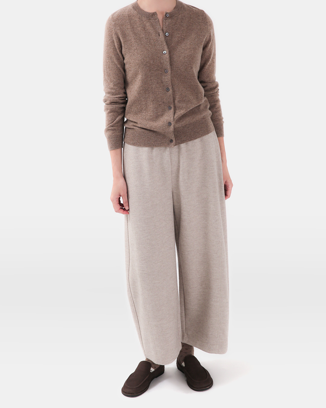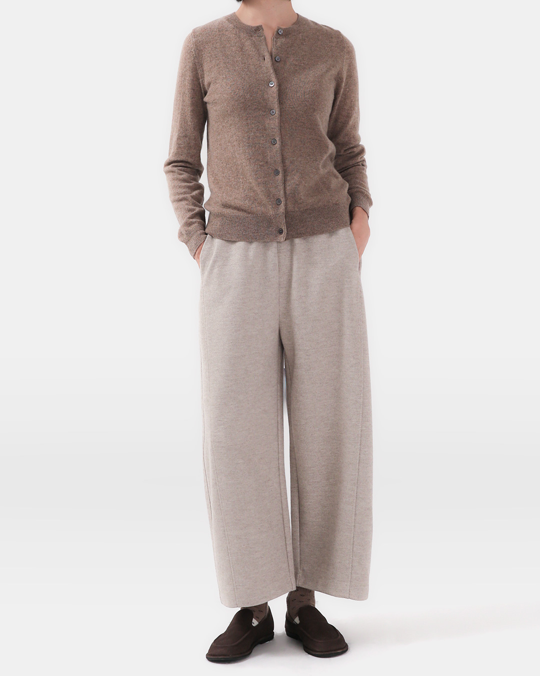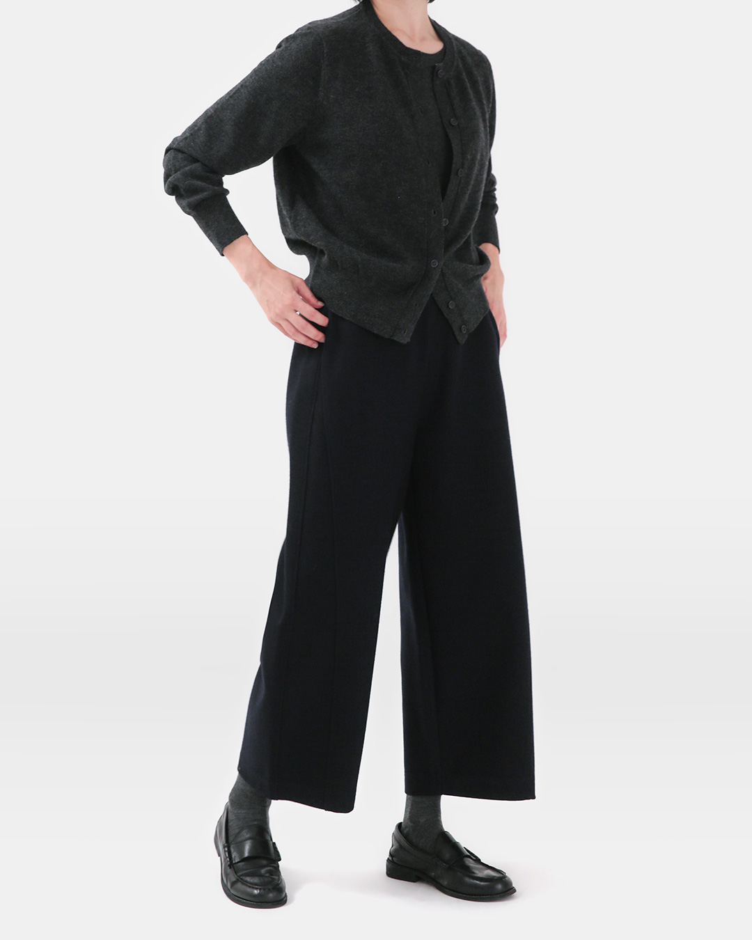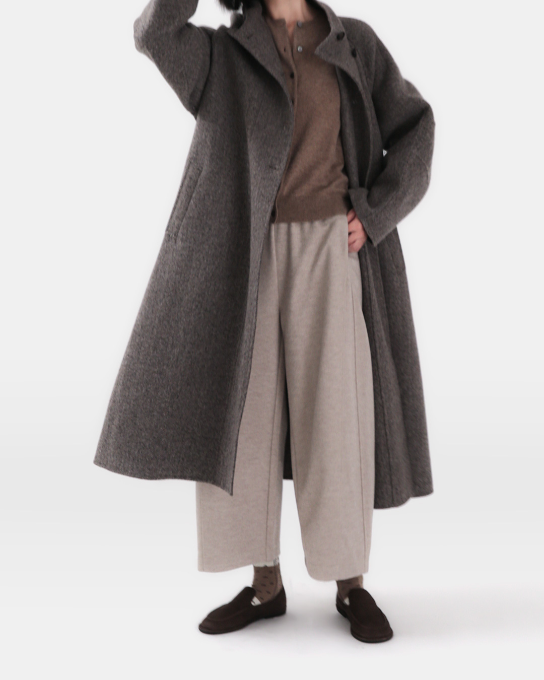 트레이닝 팬츠처럼 가볍고 부드럽지만, 실루엣은 차분하게 떨어져 출근 룩에도 무리 없는 캐시미어 블렌드 와이드 팬츠입니다. 복부를 부드럽게 감싸는 밴딩과 여유 있는 폭으로 군살은 자연스럽게 커버하고, 앉았다 일어나도 편안해요. 오직 클래시컬리 단독 기획으로 합리적인 가격까지 갖췄습니다. 하루의 리듬을 방해하지 않는 편안함, 그리고 한 끗 다른 단정함. 데일리 캡슐 옷장에 꼭 필요한 기본이 되어줄 거예요 😊캐시미어 20% 블렌드: 피부에 닿는 결이 부드럽고 포근한 보온감