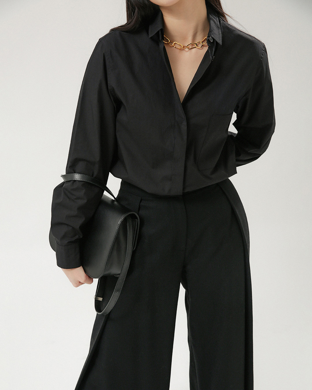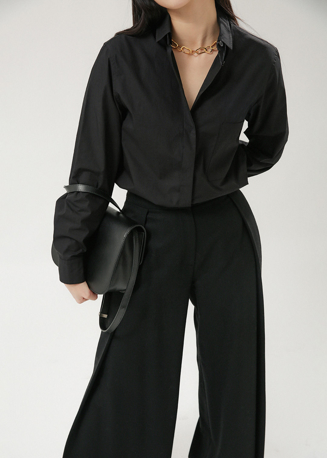 출근길엔 단정하게, 주말엔 가볍게 걸쳐도 세련된—한 벌로 하루의 ‘기본’을 완성하는 코튼 셔츠입니다. 살짝 여유로운 실루엣과 히든 플래킷의 매끈한 표정, 그리고 탈부착 칼라로 레귤러/차이나 두 가지 무드를 오가는 2-way 연출까지. 손이 가장 자주 가는 데일리 셔츠가 되어줄 거예요.