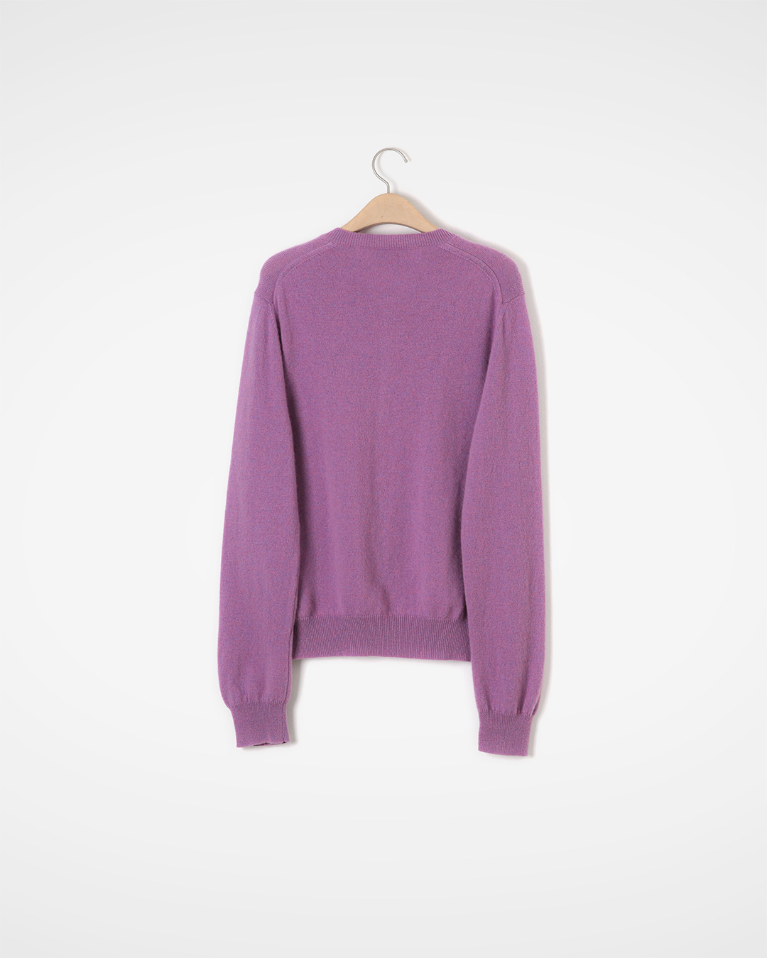 탄탄하게 짜인 울 100% 소재가 가볍지만 결이 단단하고, 오래 입어도 흐트러지지 않습니다. 라운드넥 디자인으로 이너와 아우터의 경계 없이 자연스럽게 매칭되고, 소매 끝의 작은 하트 자수가 담백한 룩에 은근한 포인트가 되어줍니다.
