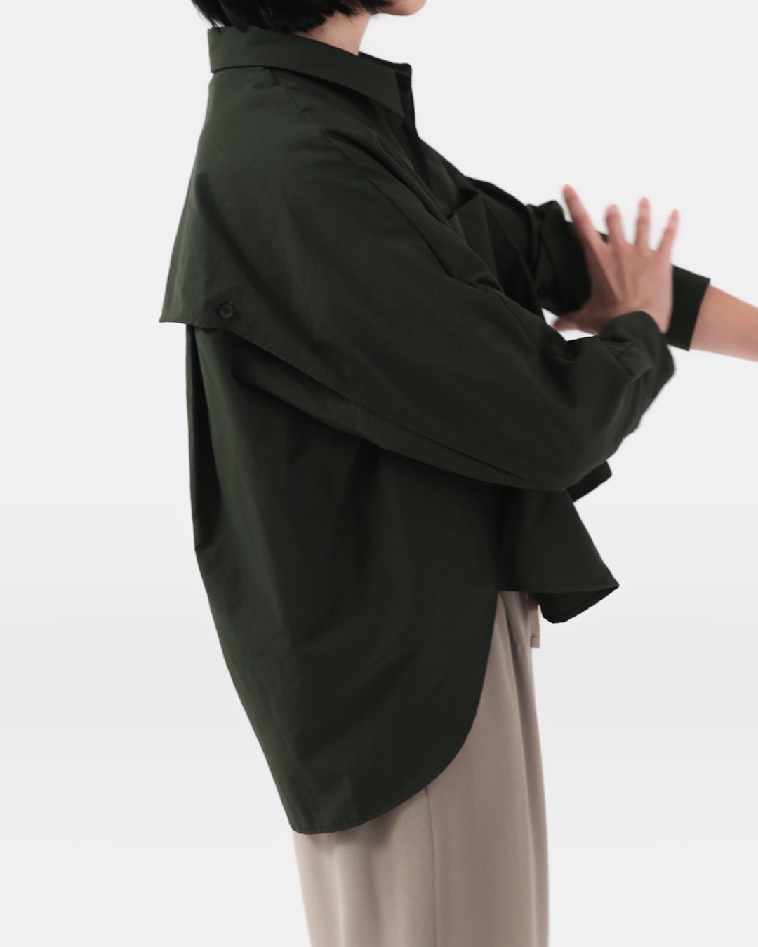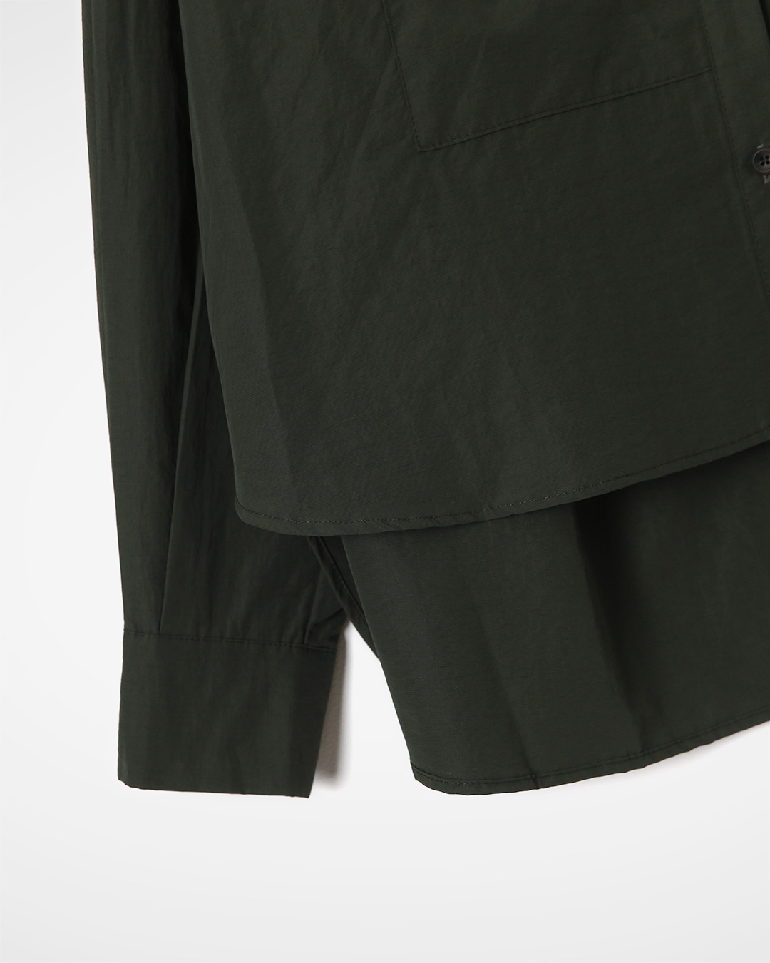 스락한 터치와 여유 실루엣, 한 끗 다른 레이어드 밑단 덕분에 평범한 날의 셔츠도 충분히 근사해집니다. 출근길엔 슬랙스, 주말엔 데님과. 손이 자주 가는 진짜 데일리 셔츠예요. 와이드 팬츠에 넣지 않고 자연스럽게—볼륨 균형이 예쁘게 잡혀요. 이너로 하프넥 니트를 받치면 간절기 아우터 셔츠로도 손색없습니다 😊나일론 49%, 코튼 51%: 가볍고 드라이한 촉감, 구김에 강하고 관리 쉬움