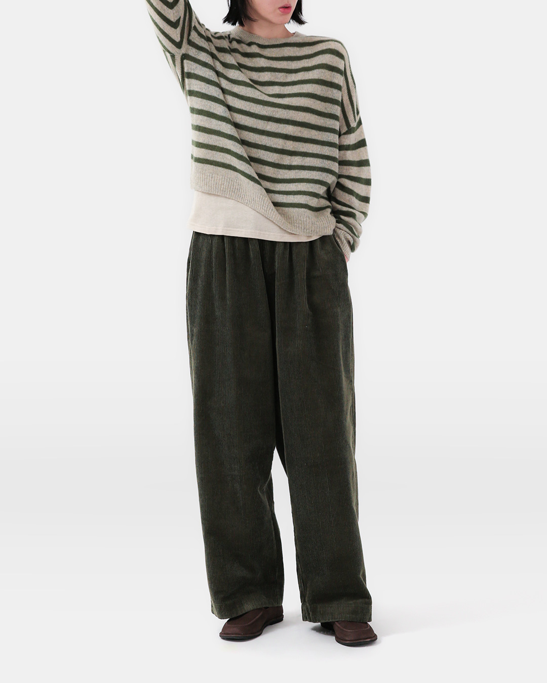 바쁜 날엔 ‘툭’ 입어도 스타일이 완성되는 팬츠가 필요하죠. 입체적인 항아리 실루엣이 힙과 허벅지를 자연스럽게 감싸 주고, 전체 허리 밴딩이 하루 종일 편안함을 지켜줍니다. 세로 골이 선명한 코듀로이 텍스처가 룩에 깊이를 더해 겨울 니트와 패딩에도 단정하게 어울려요. 무심히 입어도 깔끔하고, 오래 입을수록 멋이 쌓이는 겨울의 유니폼 팬츠입니다 😊