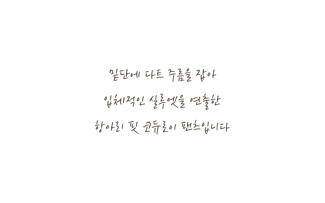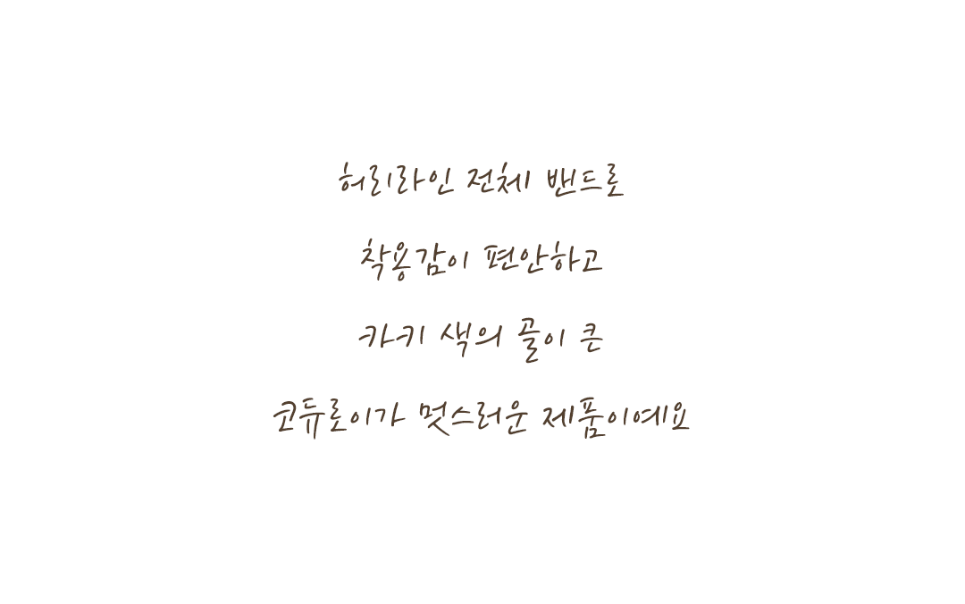 말단에 다트 주름을 잡아 입체적인 실루엣을 연출한 항아리 핏 코듀로이 팬츠입니다. 허리 전체가 밴드 처리되어 있어, 편안하면서도 체형을 자연스럽게 커버해주죠. 특히 카키 색상의 굵은 골이 돋보이는 코듀로이 원단이 멋스러운 분위기를 더해줍니다. 오직 클래시앤모어에서만 만나볼 수 있는 특별한 디자인으로, 매일 입고 싶을 만큼 편안하고 실용적이에요. 무심히 걸쳐도 은근히 스타일이 살아나는 이 팬츠로, 바쁜 일상 속에서도 우아하고 편안한 일상을 누려보세요 😊 -