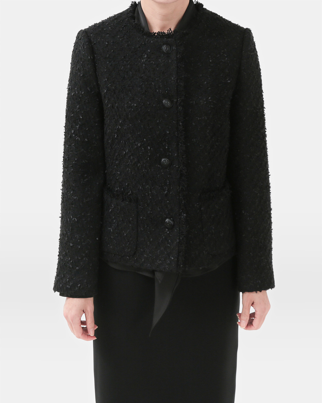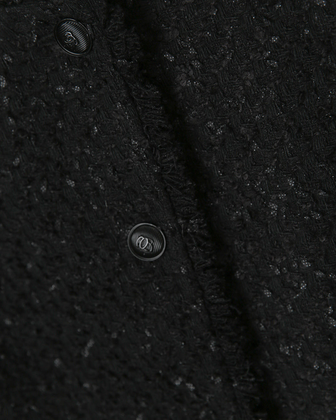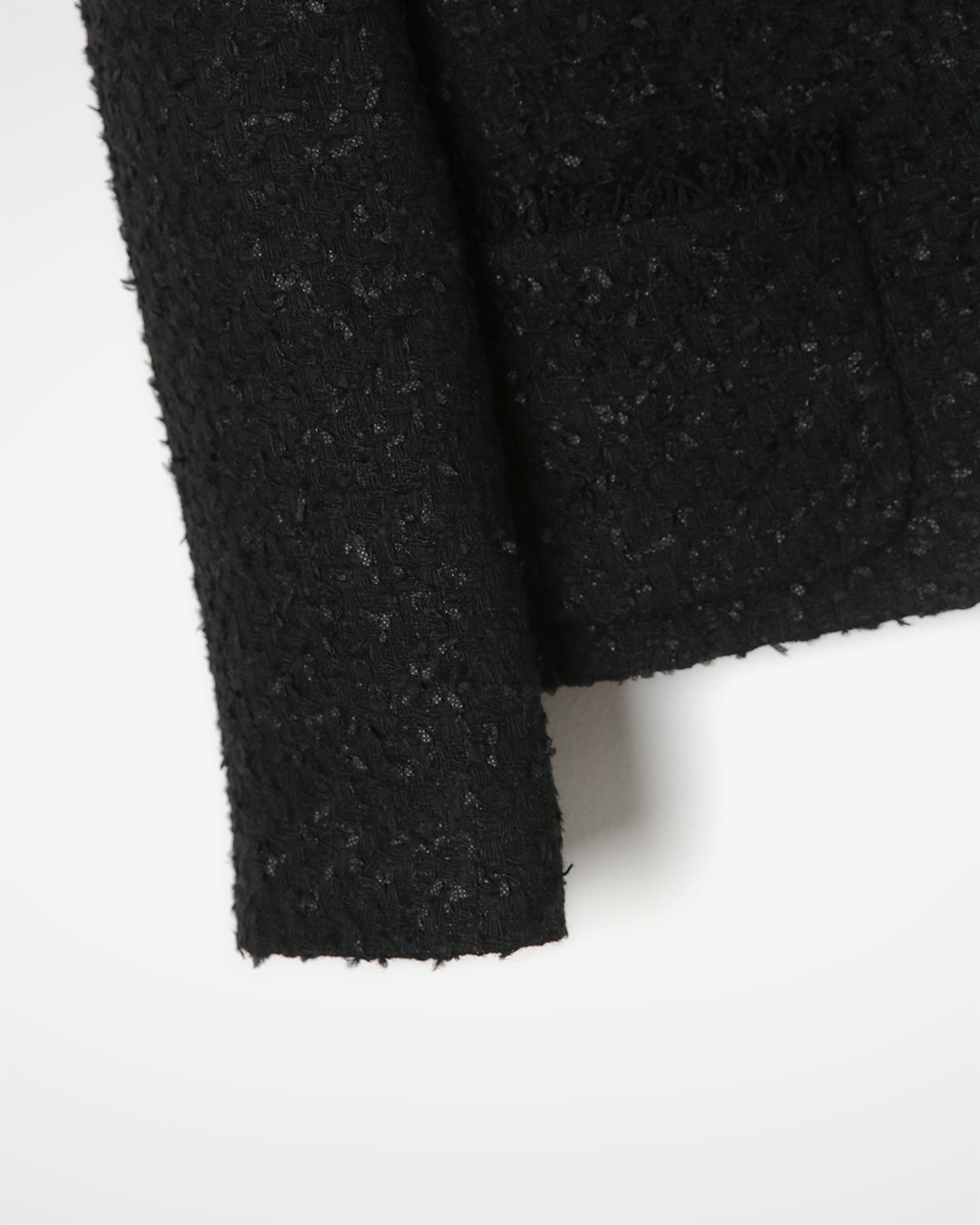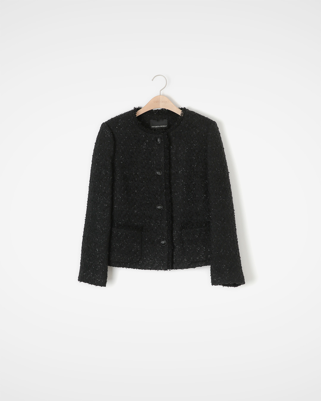 울100% 소재로 고급스럽게 연출한 트위드 재킷입니다. 은은하게 반짝이는 블랙 컬러라서 부담 없이 세련된 무드로 착용하기 좋은 제품이예요. 유행 타지 않는 타임리스한 디자인이라 옷장에 두고 특별한 순간 오래 오래 꺼내 입기 좋습니다. 6(55), 8(66), 10(77) 사이즈로 만나보세요 😊 -