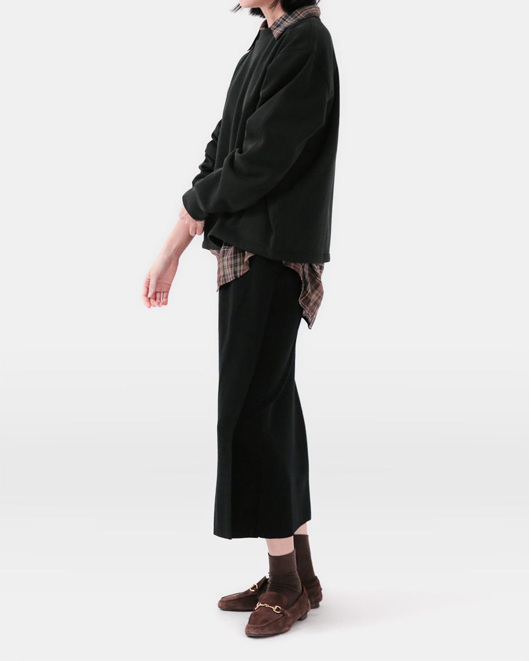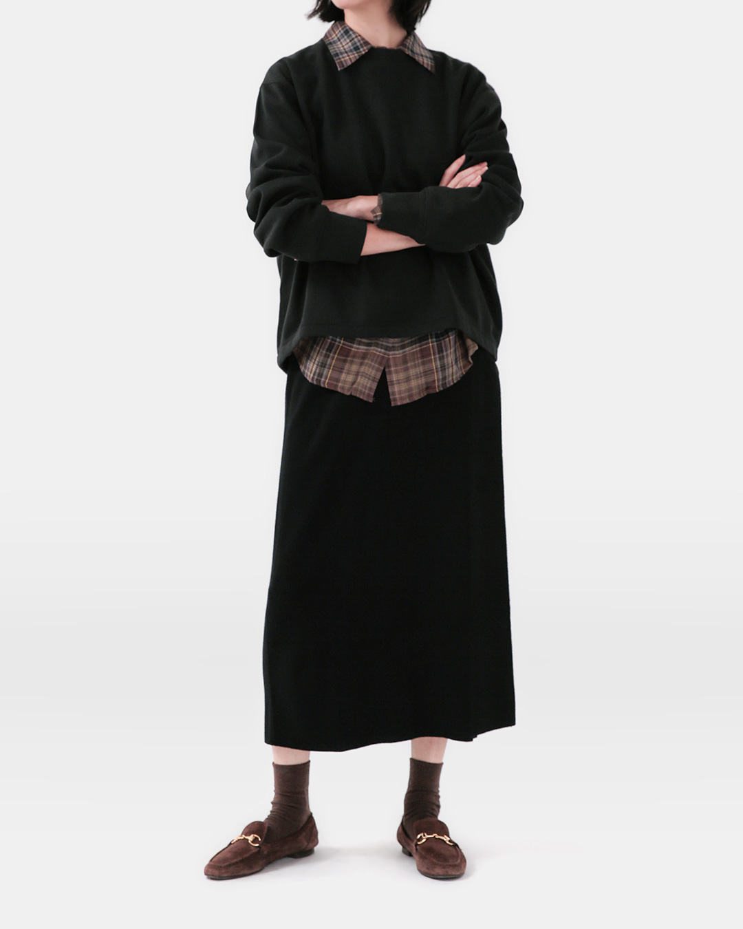 과하지 않은 여유핏으로 단독으로도, 셔츠나 폴라 위에 가볍게 레이어드해도 깔끔하게 어울려요. 특유의 미니멀한 라운드넥 라인 덕분에 아우터 속 이너로도 매끄럽게 정리됩니다 😊 -